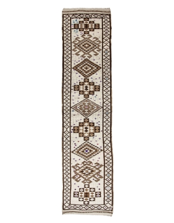 Handwoven vintage natural wool kilim runner from Northern Iraq. Approximately 45-55 years old. In very good condition. Rare find, Unique handmade item. Only 1 in stockFree shipping WorldwideUsually sh..